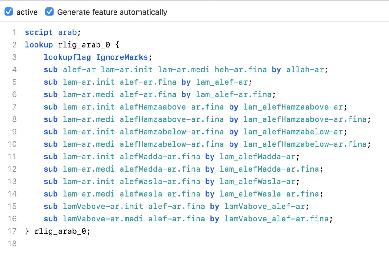 For now I can add a second rlig and add the extra lines myself to be able to keep the auto-rlig (unless there’s something else I should be doing?), but the additional code at the end should probably be auto generated with the lamalef feature for all languages with the “arabic” parent script tag.