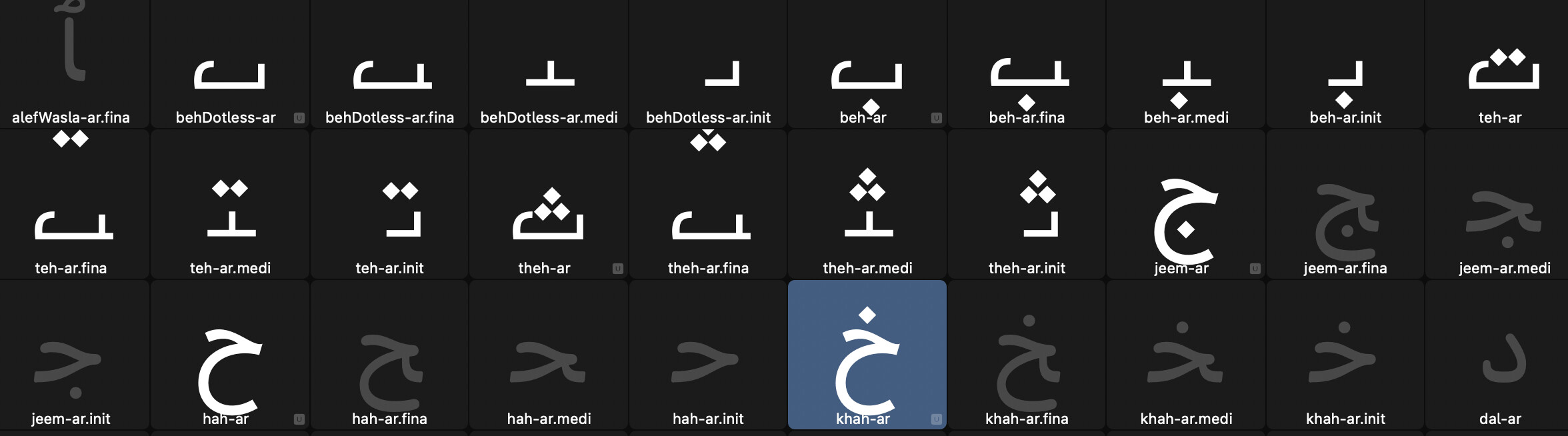 Can anyone help me to figure out what’s the issues with automatic aligning arabic dots and marks, as show in pics I tried to initiate “behDottles-ar” & “dotbelow-ar” to form the letter “beh-ar”, since I have activated the anchors and their names and you can check; when I move the anchor around in “behDottles-ar” it’s worked and appeared in “beh-ar” , My problem how to fit the Arabic marks such as “kasra-ar” its position should be below the “dotbelow-ar” not above it, actually I read the manuals but I’m still confusing, finally I think it’s bug in the app ?!