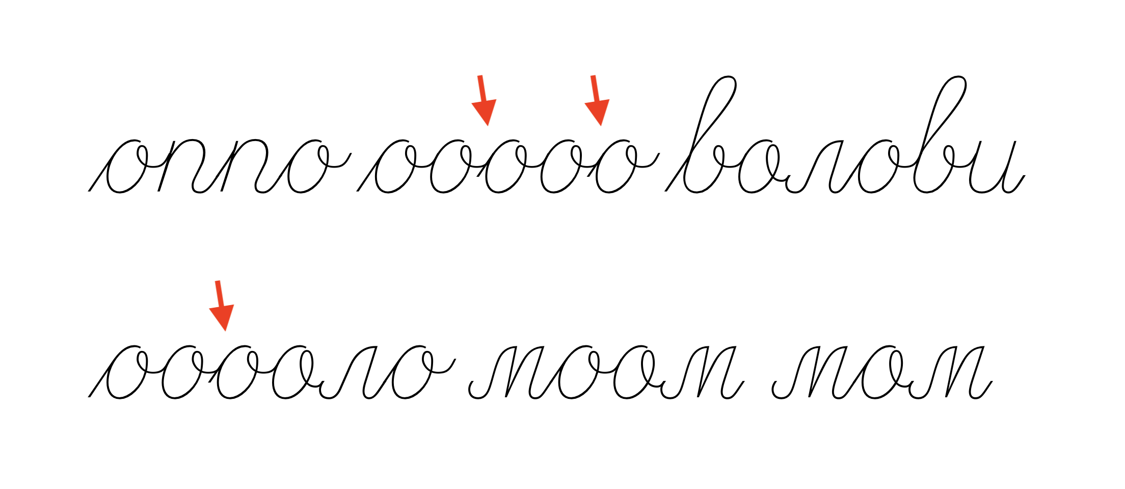 Here is an example of what I would want to get with the calt feature (the Cyrillic el there is the only regular medial form letter):