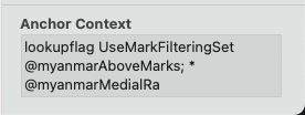 Sovichet mentioned the anchor names might be the problem, as I’m using *bottomright in this case, not *bottom or *top. And my medialYa has its own anchors *medialYa, which isn’t working at all. Could the compiler for contextual anchors include arbitrary names?