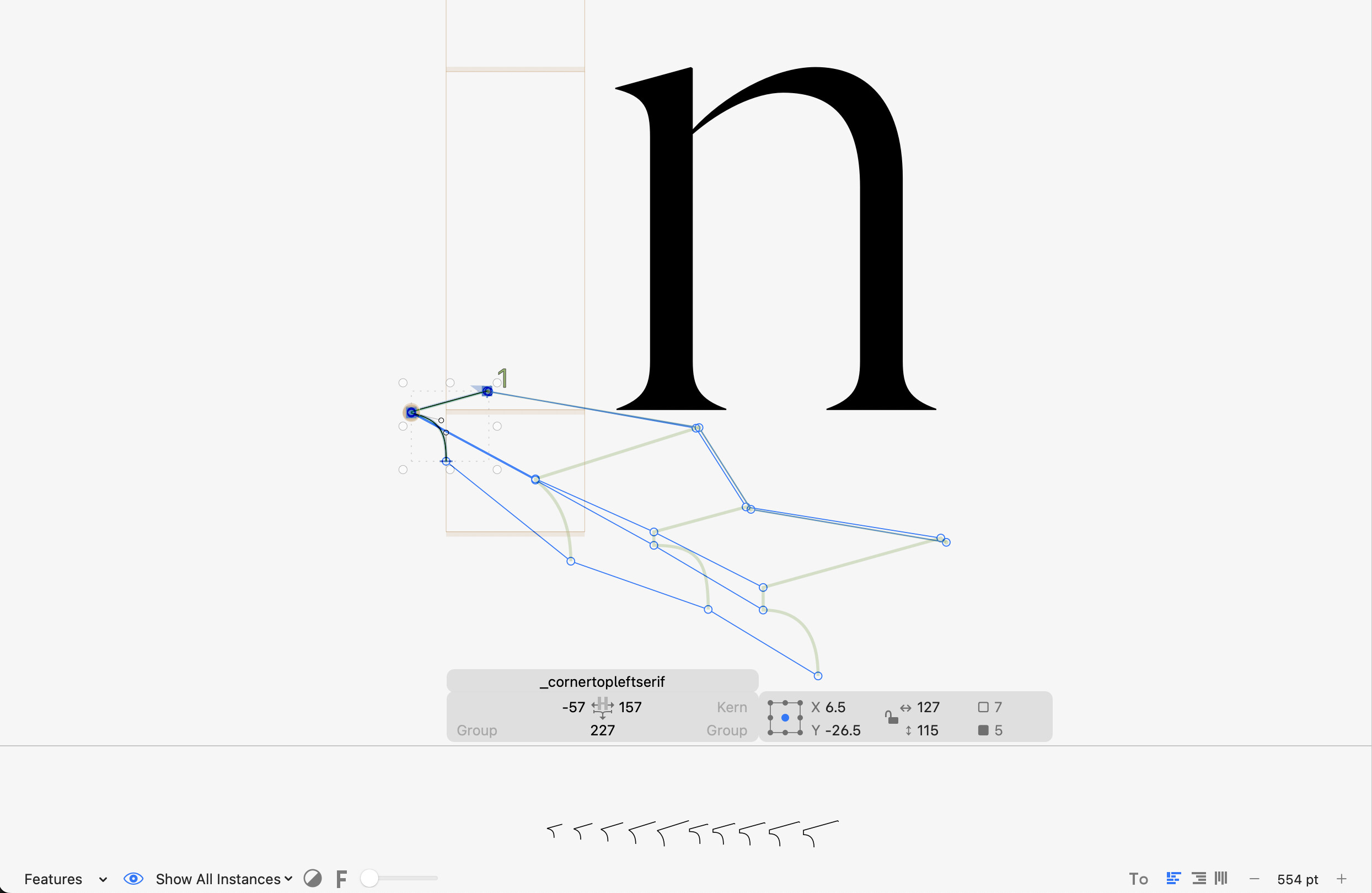 I published a font a year ago without any problems. Now, I had to go back to the source file to fix an error spotted by a client (not related to this topic), and when exporting, I found out that one of the serif components that was performing correctly a year ago is now not rendering well, and the stems are distorted. I have no clue what’s going on. I tried to modify the logic by using origin, left and right anchor points, but the problem persists. Is there any new logic on applying corner components I’m not aware of?