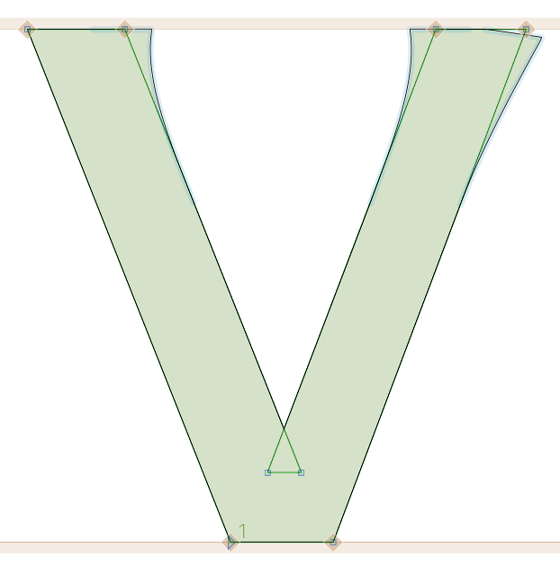 I had to create a different corner this time to get the desired result, because the previous one affected the other paths as well. I think smooth curves cause distortions in letters like the outer part of “V”. So I made a new corner component and adjusted the drawing accordingly.