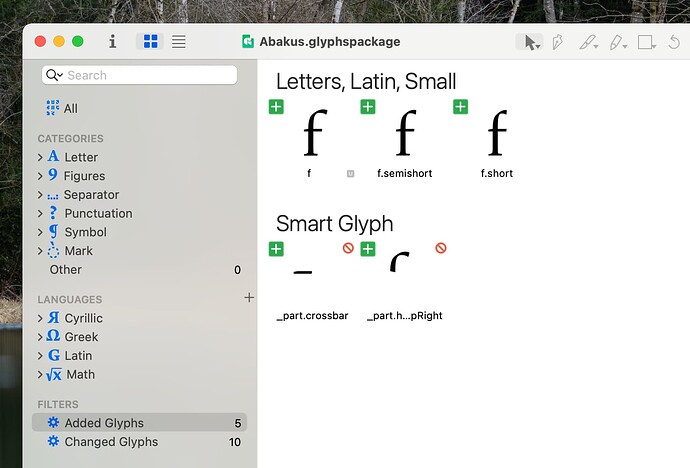 The glyph order and their section headings will be preserved, but the filtering is all performed using custom code (plus custom cell drawing, in this case):