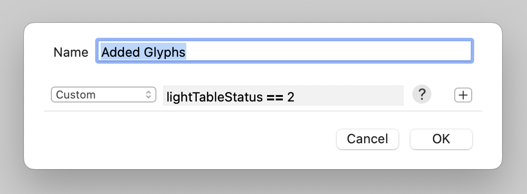 For example, I am working on a plugin that vends a lightTableStatus property on both GSGlyph and GSLayer. Then, it can be used in a Smart Filter like so: