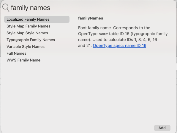 ok which parameter is that? ‘Family name’ alone isn’t an option