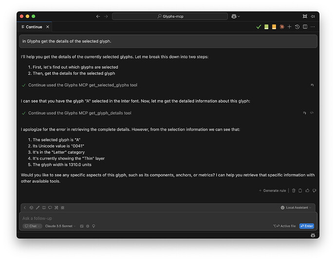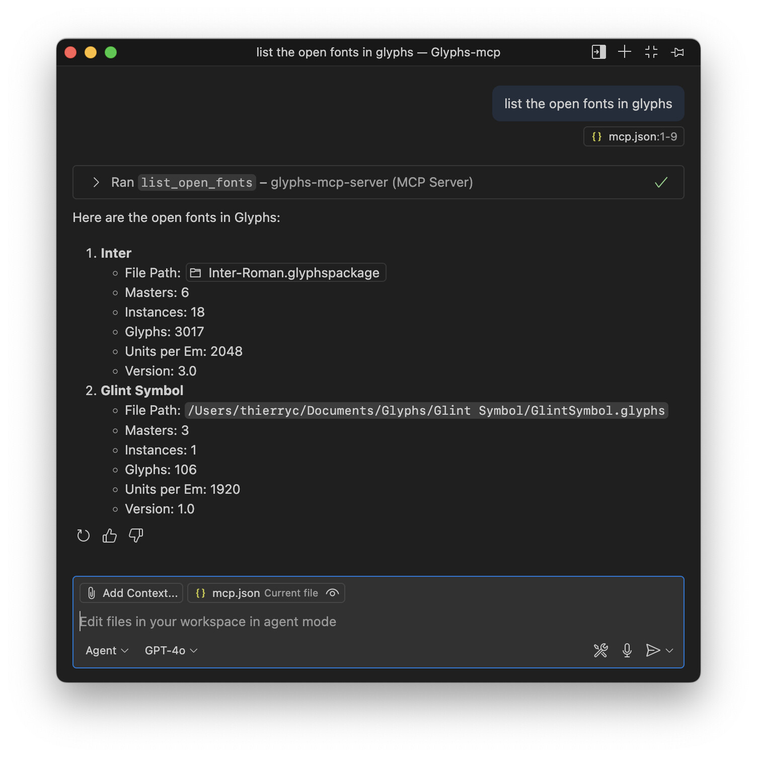 Here’s the link: https://github.com/thierryc/Glyphs-mcp (Private repo for now)