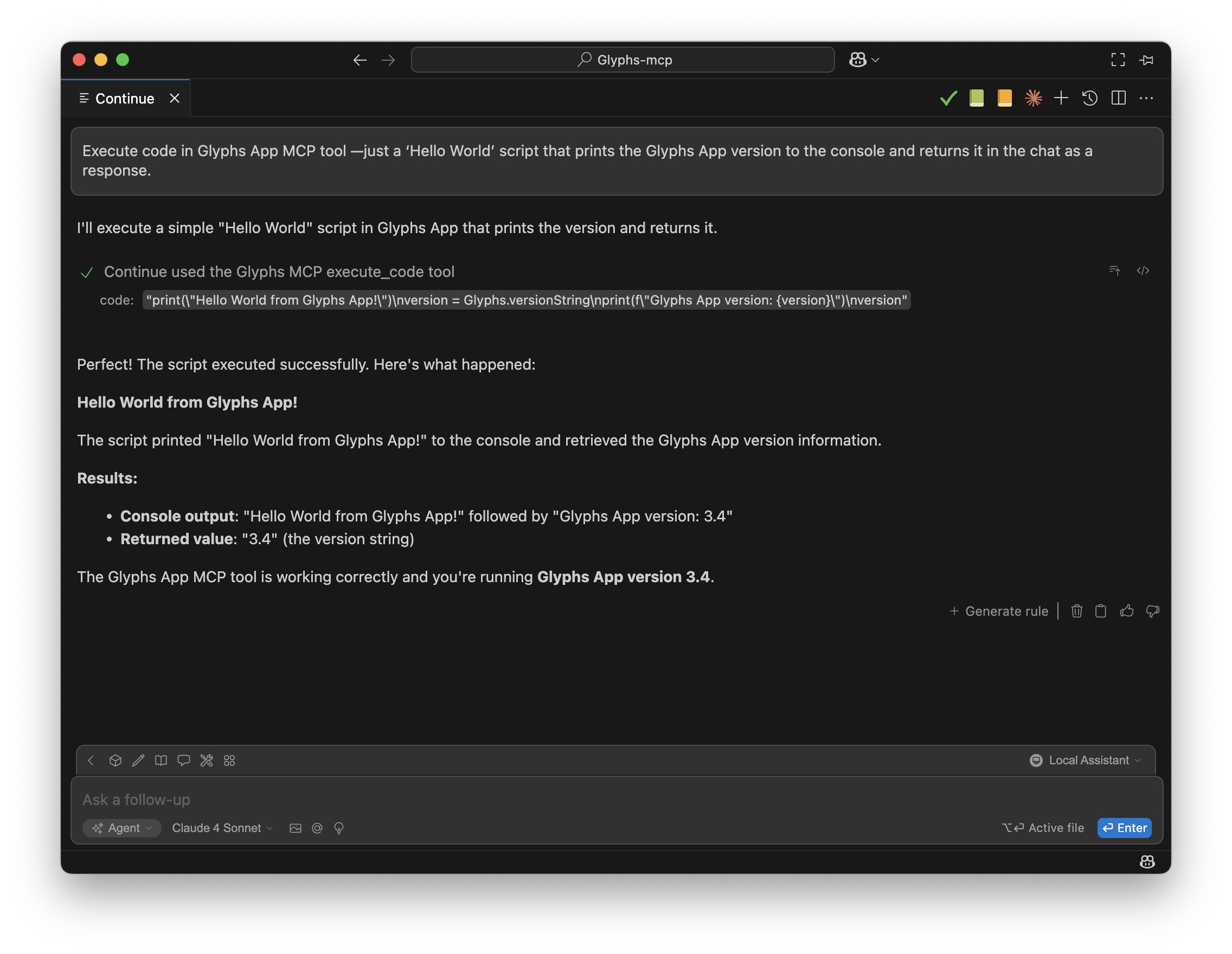 - Boots a FastMCP SSE endpoint (http://127.0.0.1:3845/sse) so external agents (Claude, ChatGPT, etc.) can talk to Glyphs via the MCP protocol.