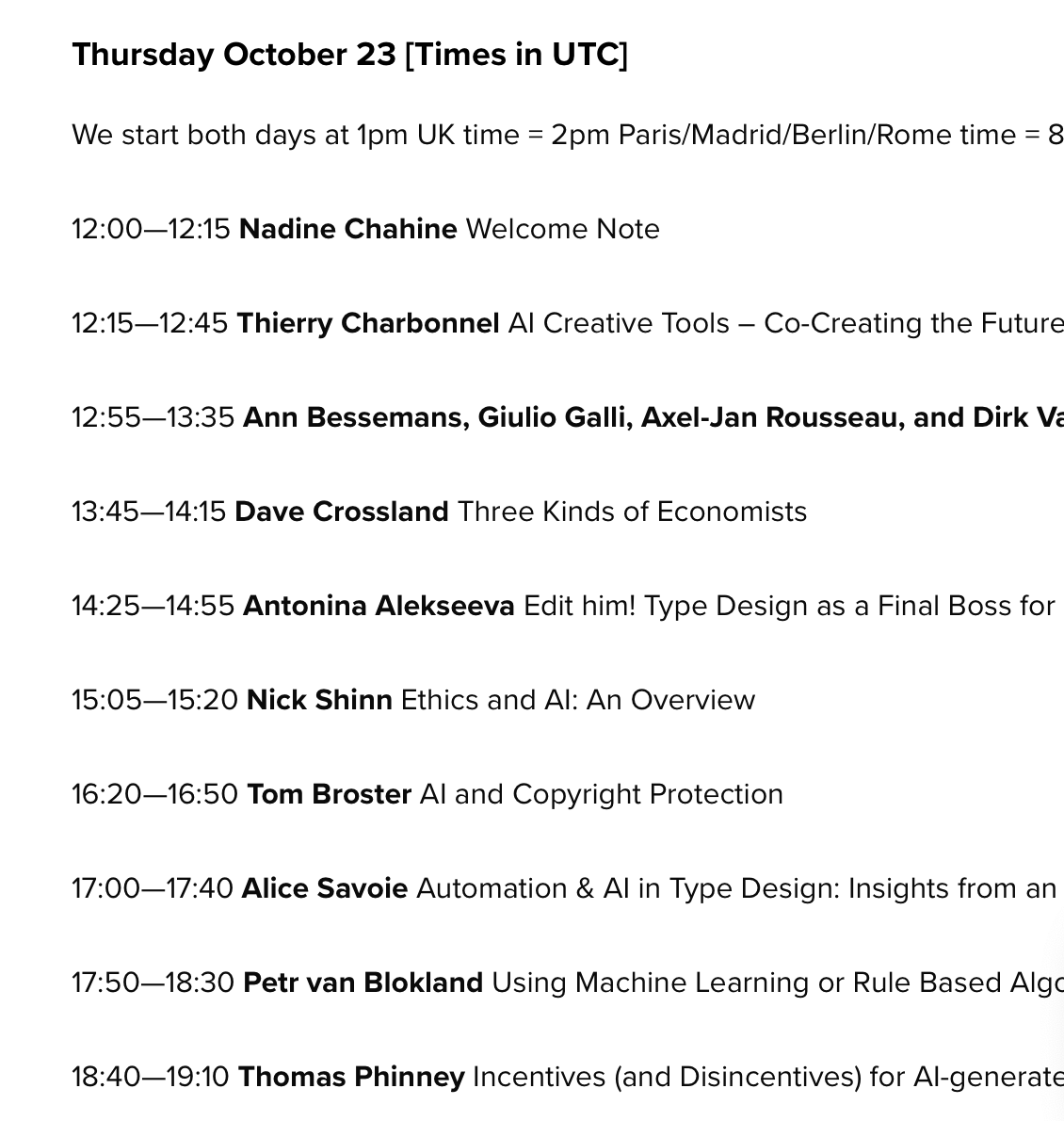 I think this is a good spot to put it: there is a Fonts & AI online conference coming up, 23+24 Oct. Hope to see most of you online there.