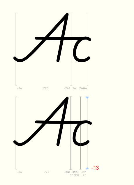 I have to compare different versions of glyphs and would like to show the relative difference in line lengths, as shown here by the red number: