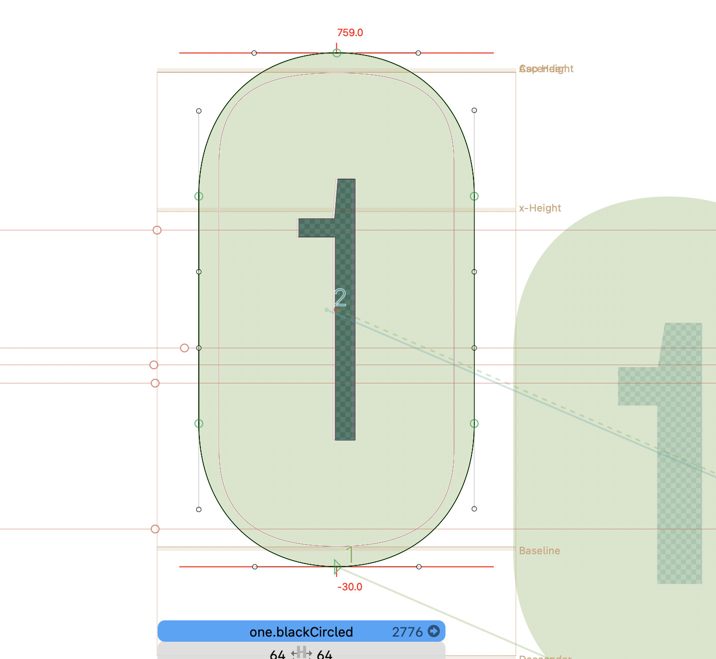 Okay, now definitely off-topic: I thought those numbers seemed familiar. Are you working on a fork of Hubot Sans? I did the mastering for that, the circled numbers should actually be with blackCircle and .dnom figures, using centre anchors to align the figures. Are you working from an old source? Or did GitHub (or the external designer) screw with the sources again?