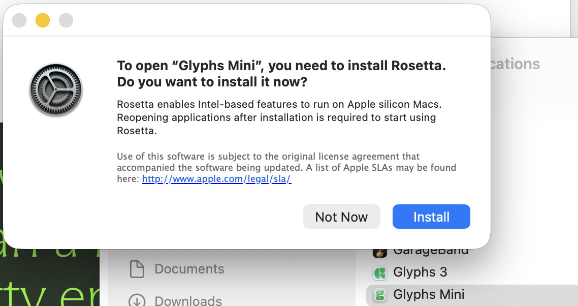 Ah, yes. You need to install Rosetta to run Glyphs Mini.