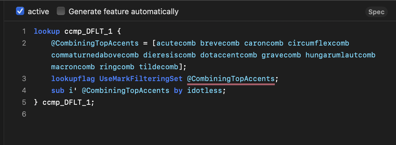 In the middle here we see 0069, latin small letter i. The engine assembles it as what I’d imagine is i and dot accent.