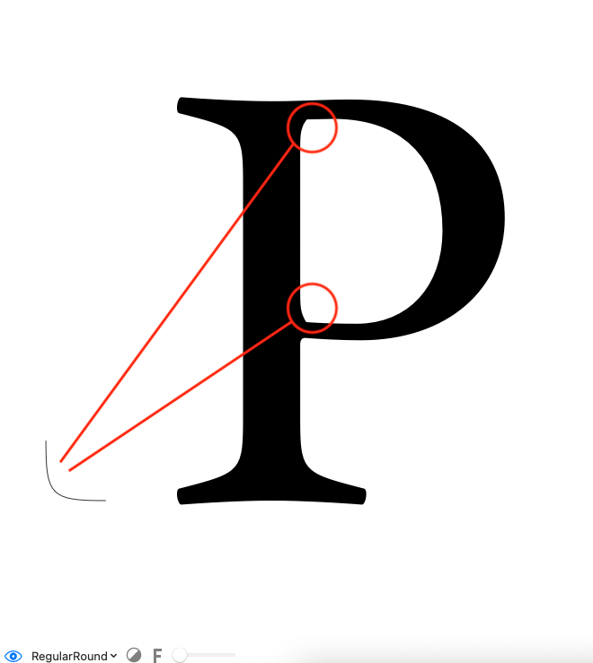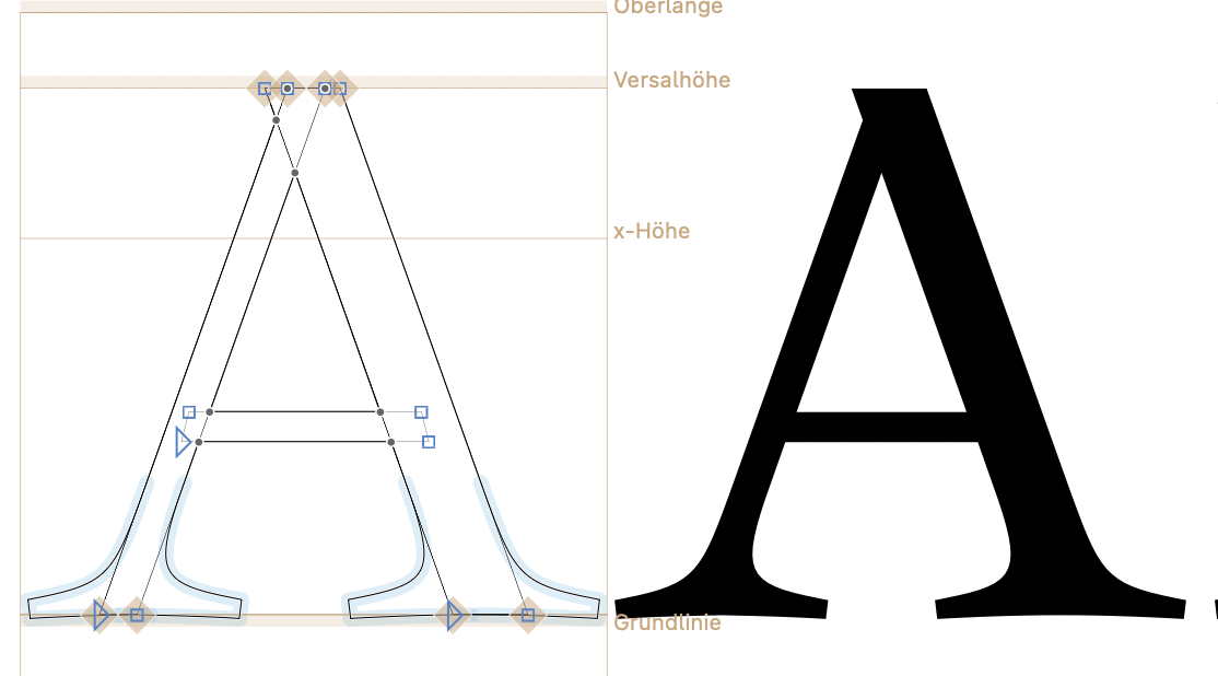 Move the anchor up and down to control the position of the serif in the “A”.