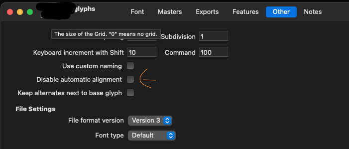 Background info: I opened a RoboFont .ufo in Glyphs and saved it as .glyphs file. In the RF file, I had Latin X diacritic marks already designed.