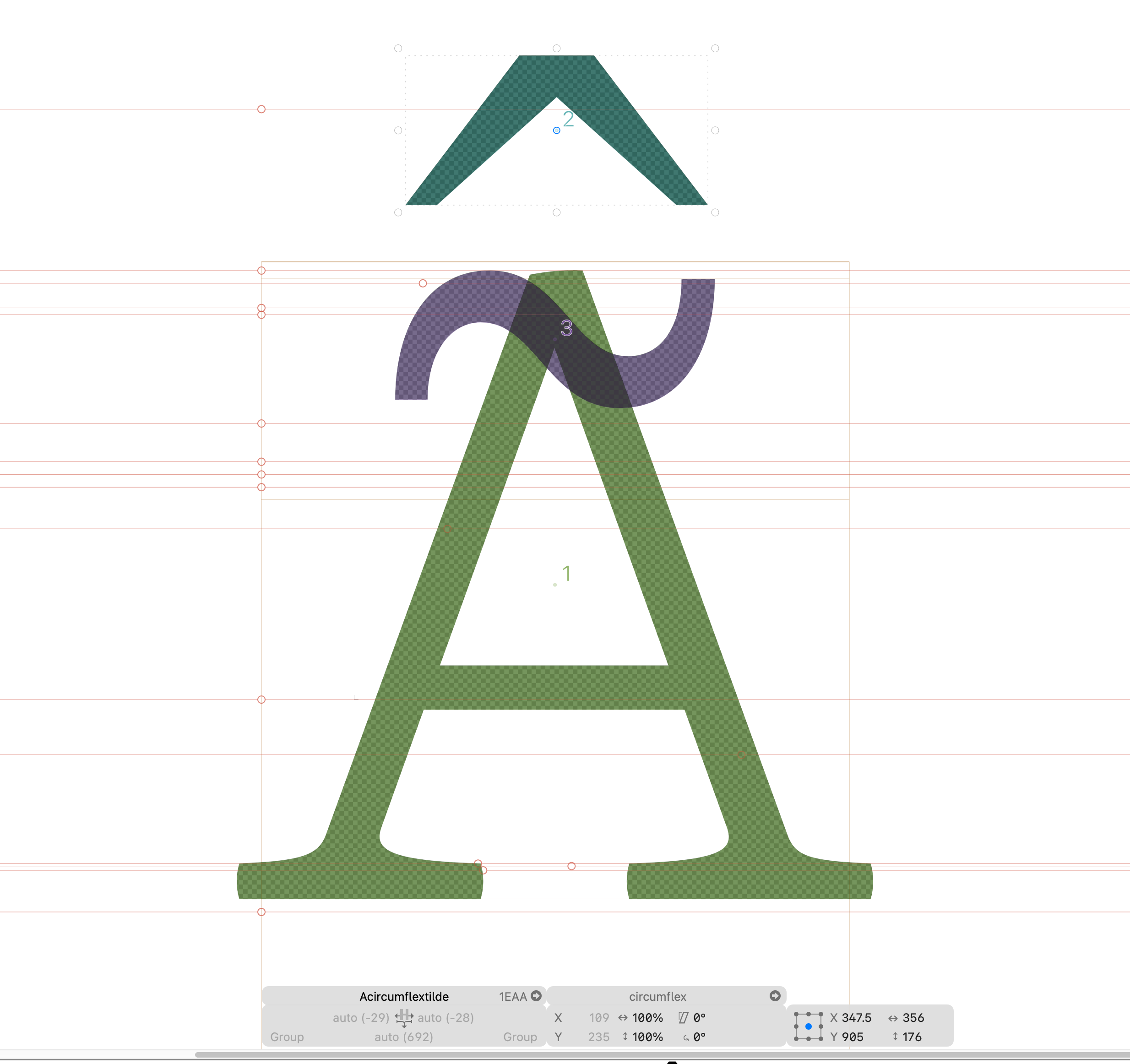 Glyphs is placing the “circumflex” and “tilde” accents separately onto the “A” and not using the “circumflexcomb_tildecomb” combined accent.