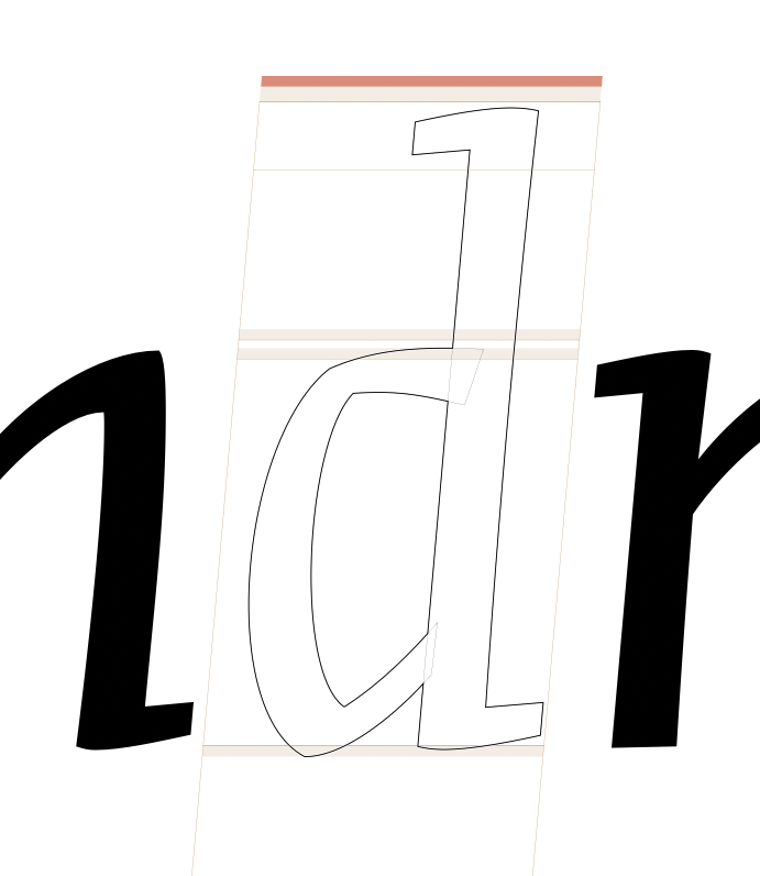 My calibration is good and changing doesn’t make any difference. On my former computer I saw a large blue or yellow kerning line from bottom to top and … there where thin lines between the glyphs when I use the text tool (T).