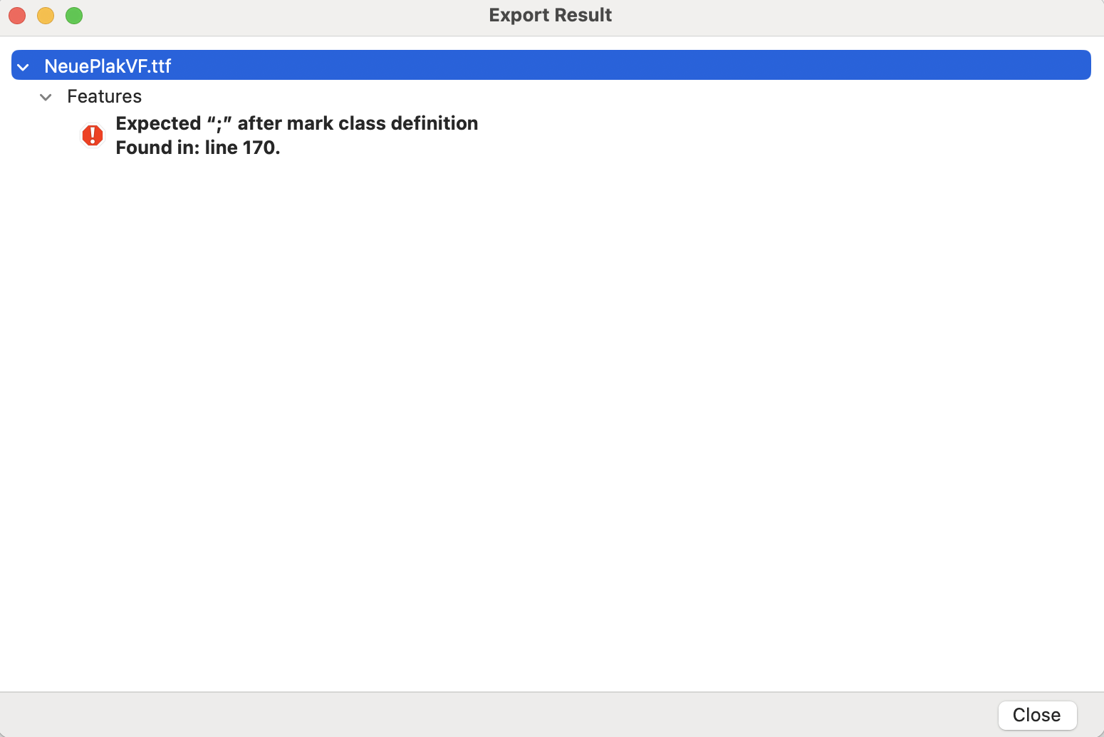 I’m having problem exporting the font file, but I can’t find the exact problem in the mark class feature.