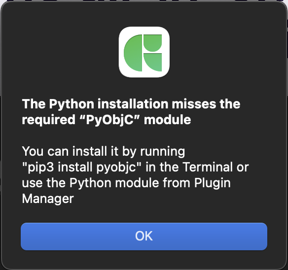 I tried running “pip3 install pyobjc” but that also does not solve this problem (I had issues with it as well).