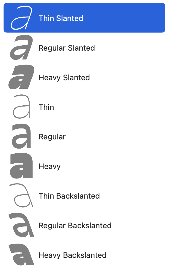 I would love to hear if there’s another (or better) way to set it up, and I’m posting this because I spent hours figuring it out and there was no info on the forum or tutorials about it. Also, my static exports are sorted first by weight then in this order: Upright, Backslanted, Slanted — and I don’t understand why it differs from Variable.