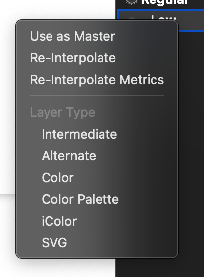 What kind of layer is Low in your example? It’s not a brace layer, it is not a master either but it is definitely a special layer. It seems like you used a brace layer as a master?