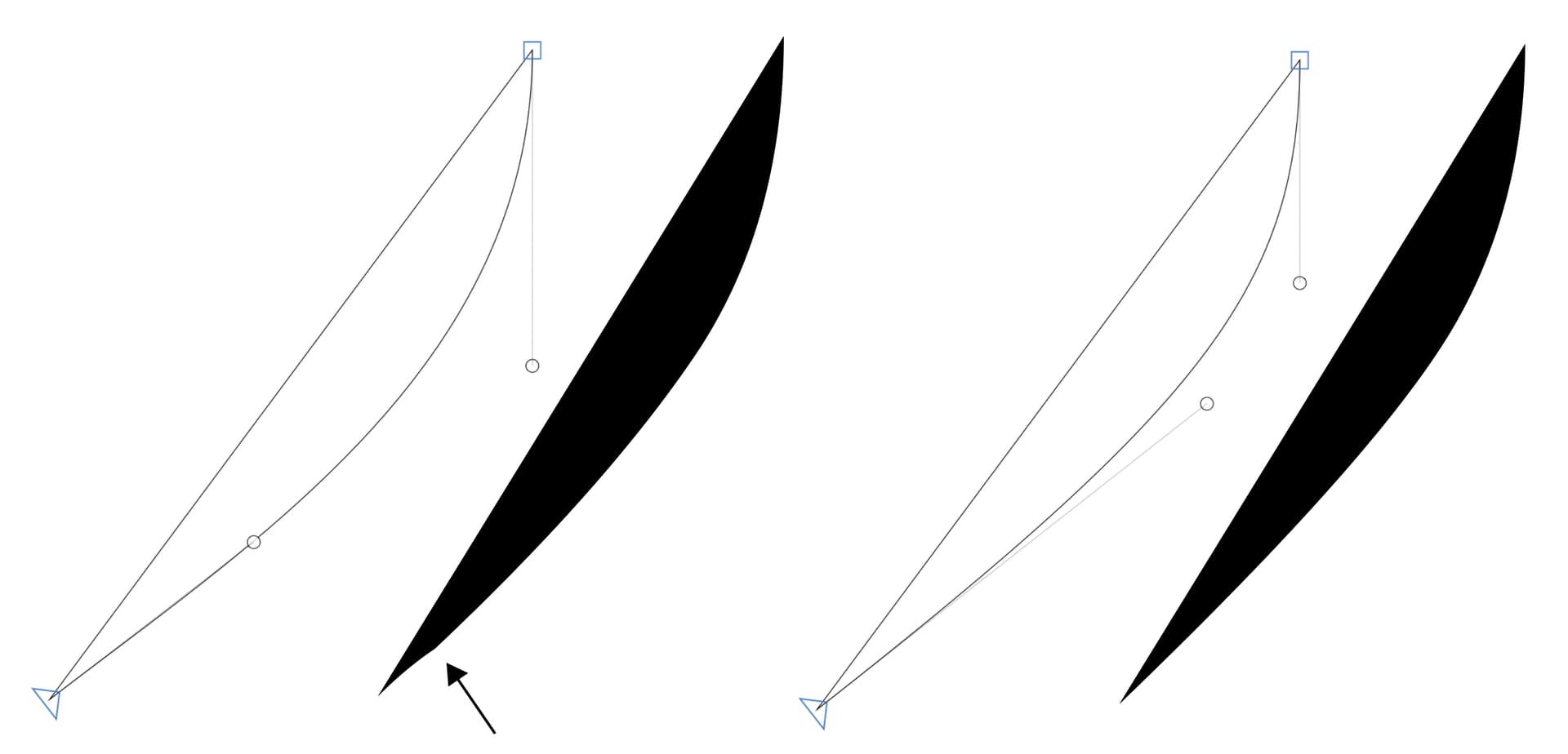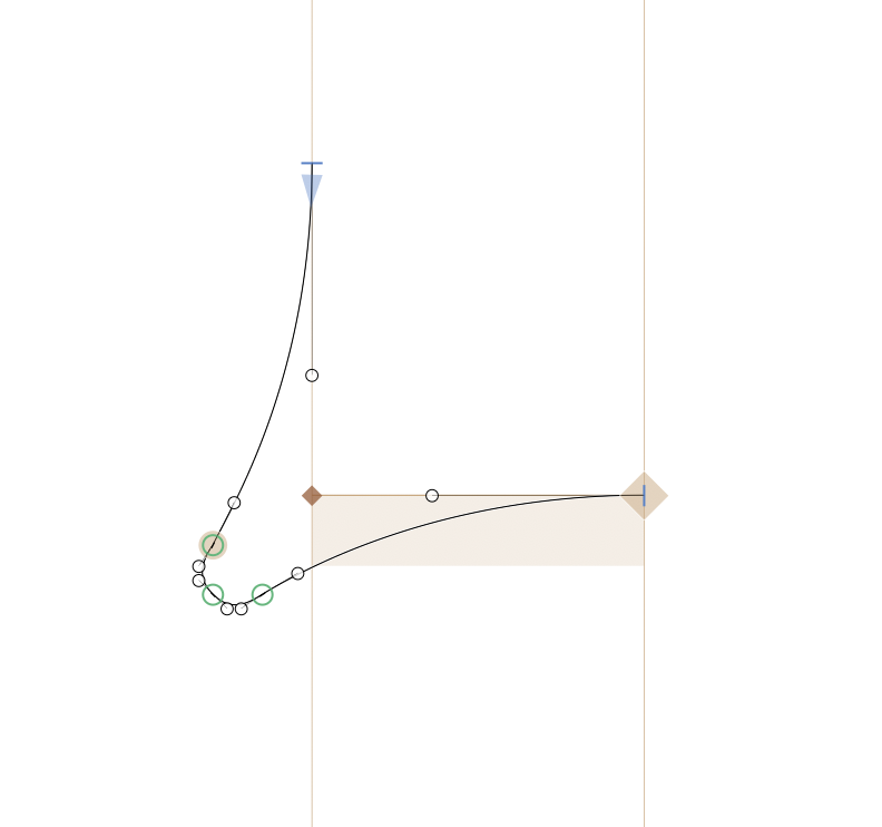 Simplify the shape as much as possible: get rid of the bottom left on-curve, otherwise the segments become too small and you’ll be running into grid rounding issues all the time.