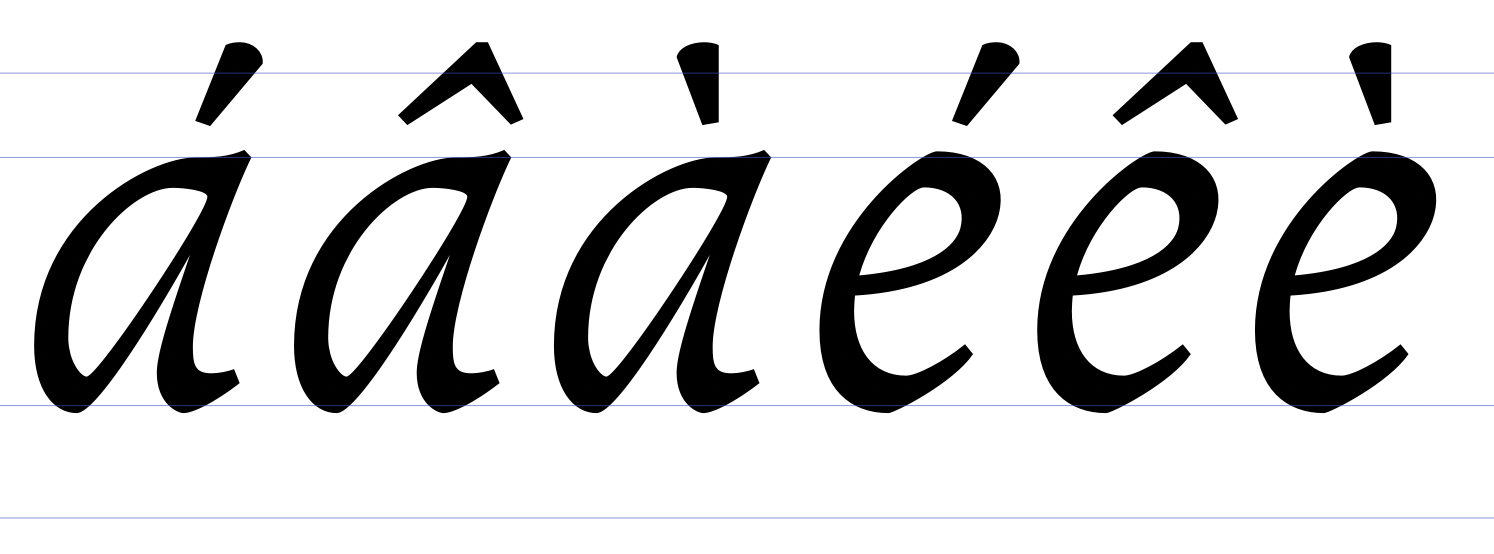 I noticed this while displaying my glyphs as 24pt, which made it very clear that “a” diacritics were slimmer, see screenshot 01 and 02. This also happens at any size, but the rastering makes it very noticeable.