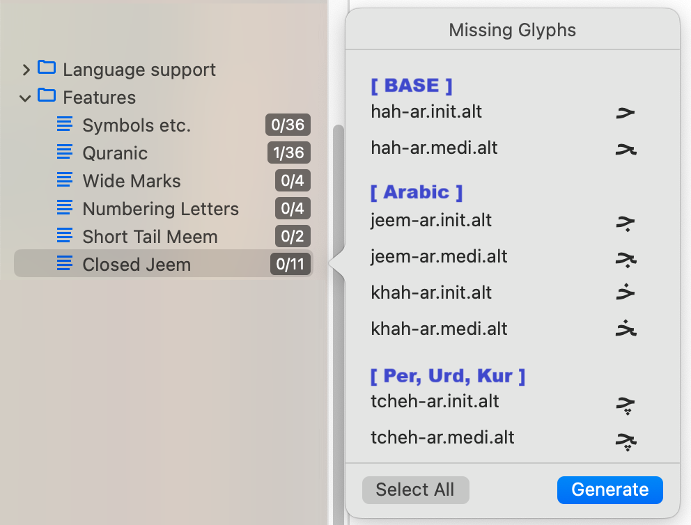 Is it possible to have subheaders/section titles within a custom list filter? Similar to the category titles using **, but within the filter itself so it’s visible when I click to see what’s missing/included without having to generate first. I have several small sets of glyphs, which would be nice to combine into just a few larger lists that have little subheaders instead of making a million little lists with just a few glyphs apiece. This is for a sidebar entry .plist file.